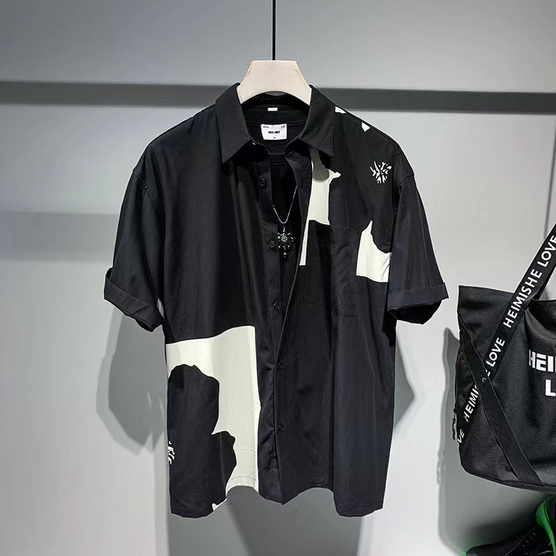 Design Contrast Short-Sleeved Shirt For Men
