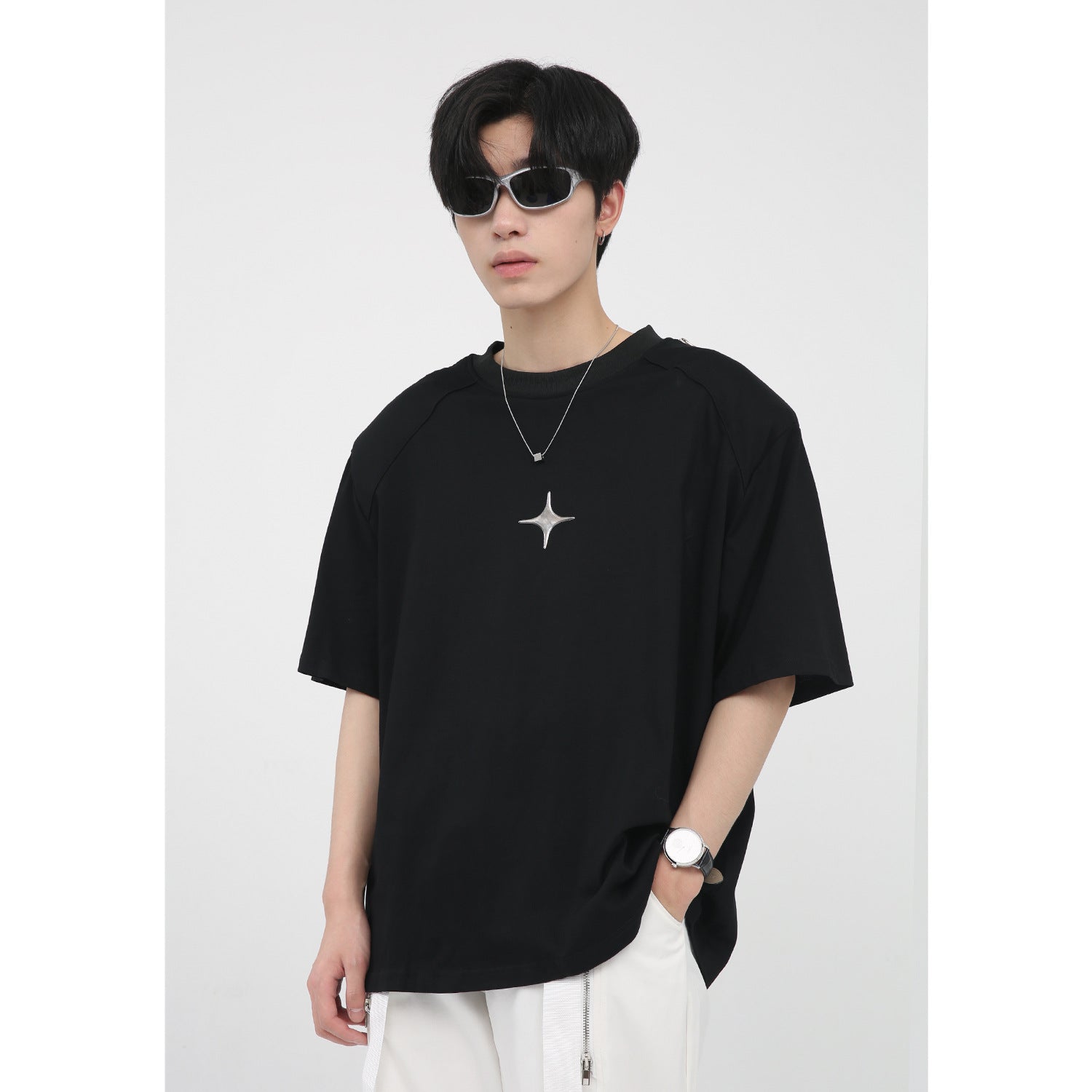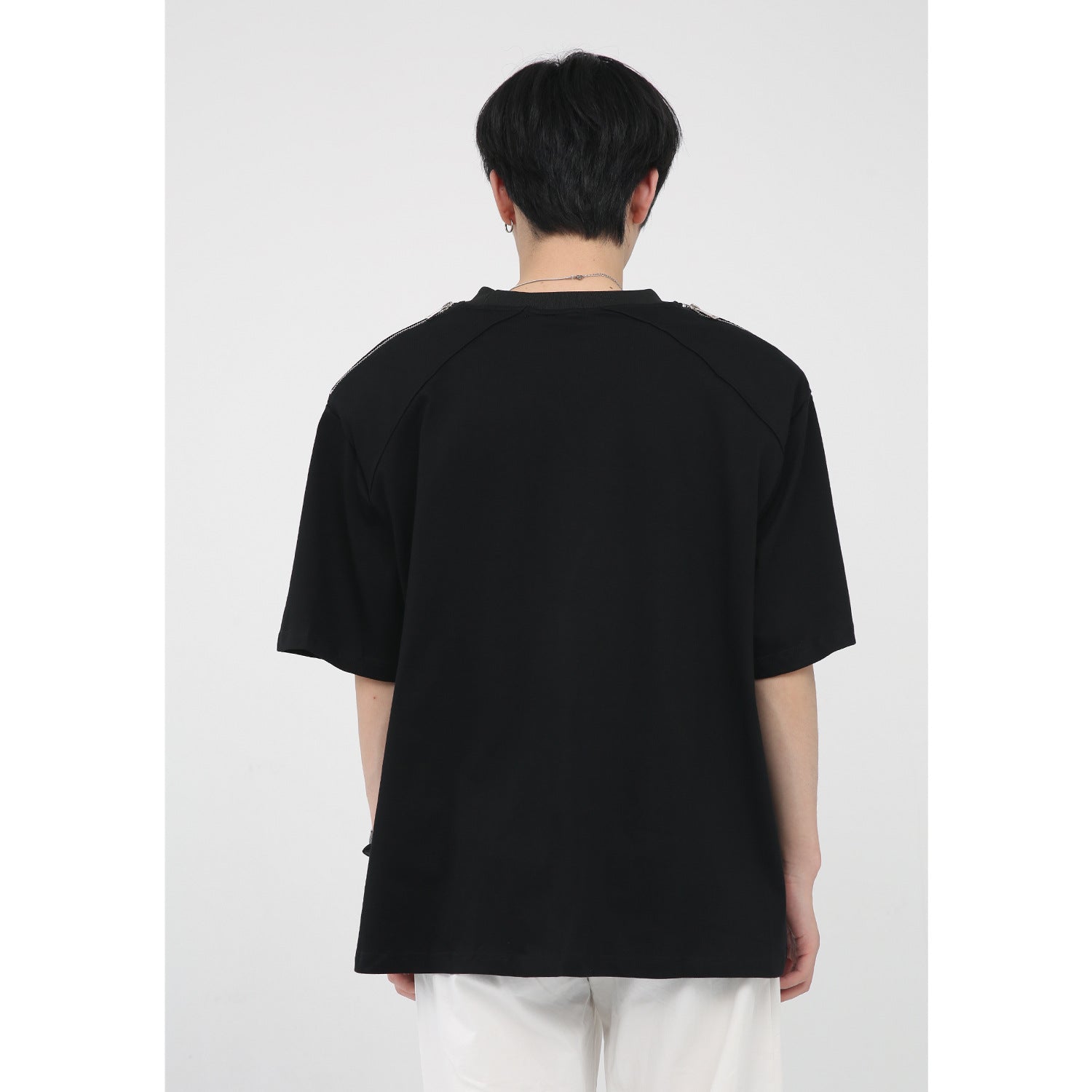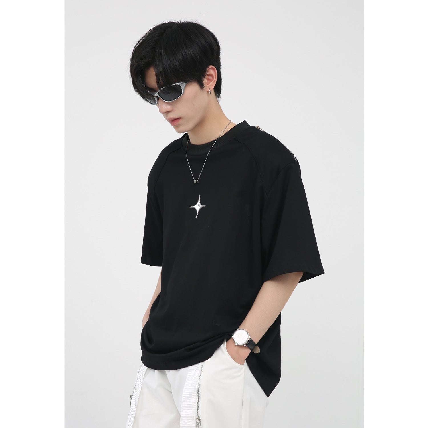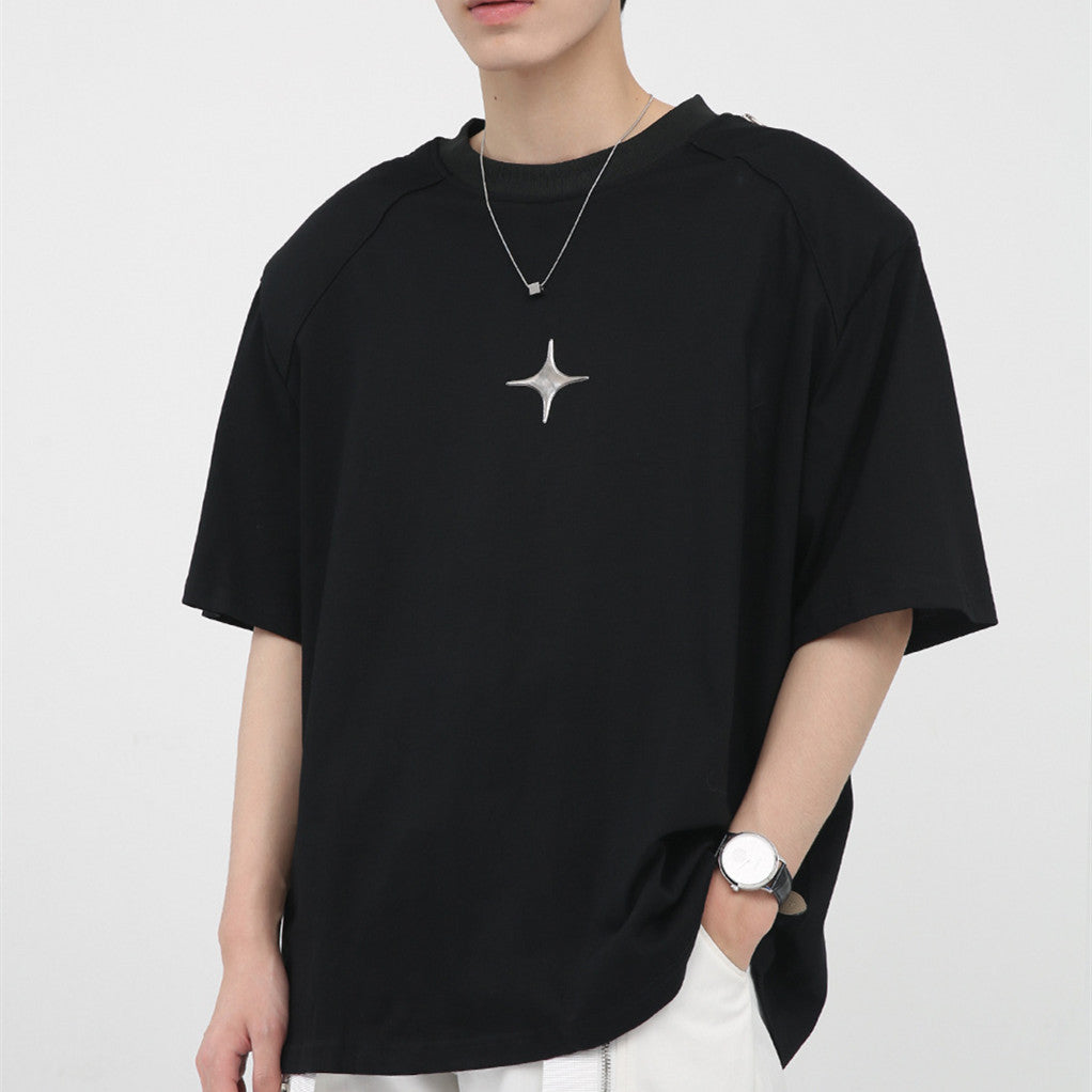 Simple Printed Zipper Shoulder Pad Design T-Shirt For Men
