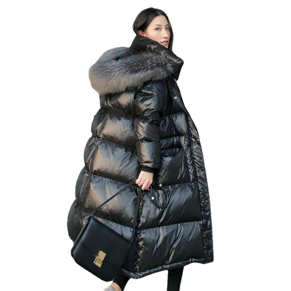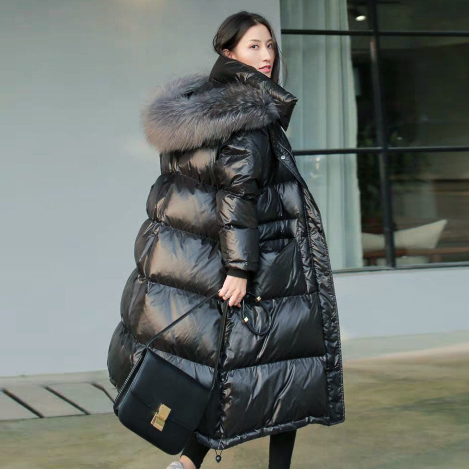 Color: Black With Grey Real Raccoon Fur Collar], Black[With Black Imitation Fur Collar], Black[Naked Clothes Without Fur Collar
