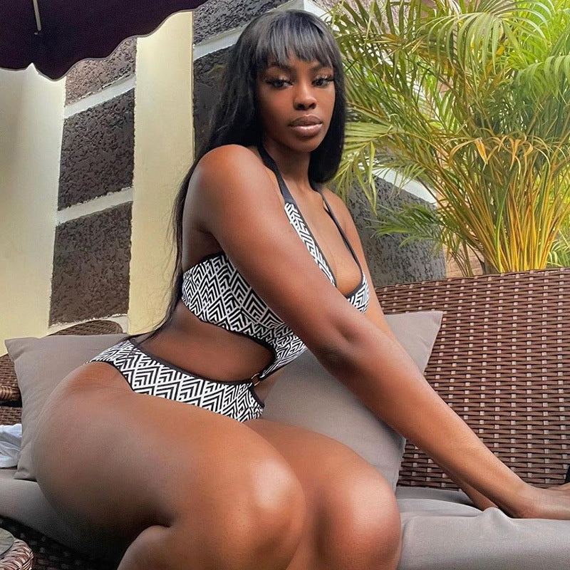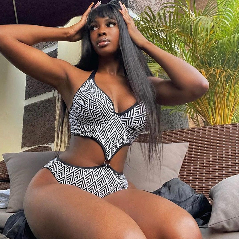 Printed Halterneck Cutout Open-Waist Bodysuit