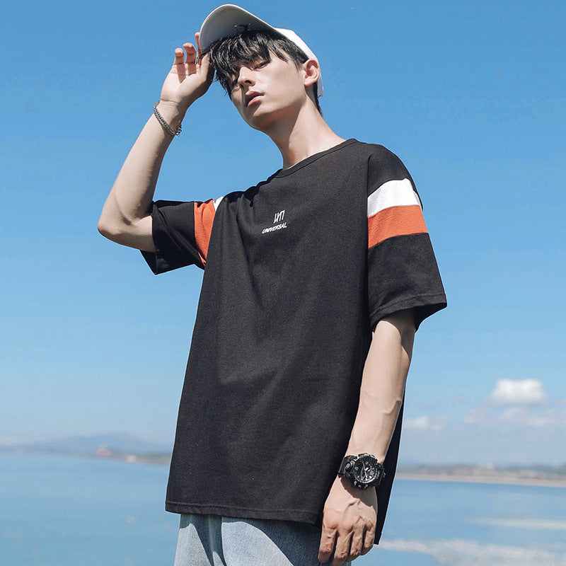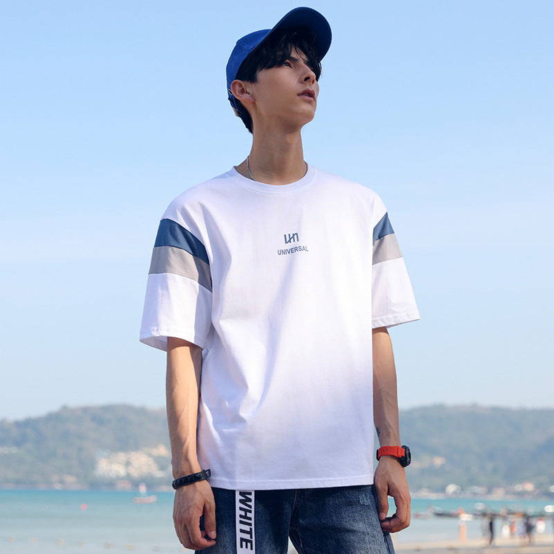 Short-Sleeved Men's Round Neck Contrast Printing Casual Cotton T-Shirt For Men