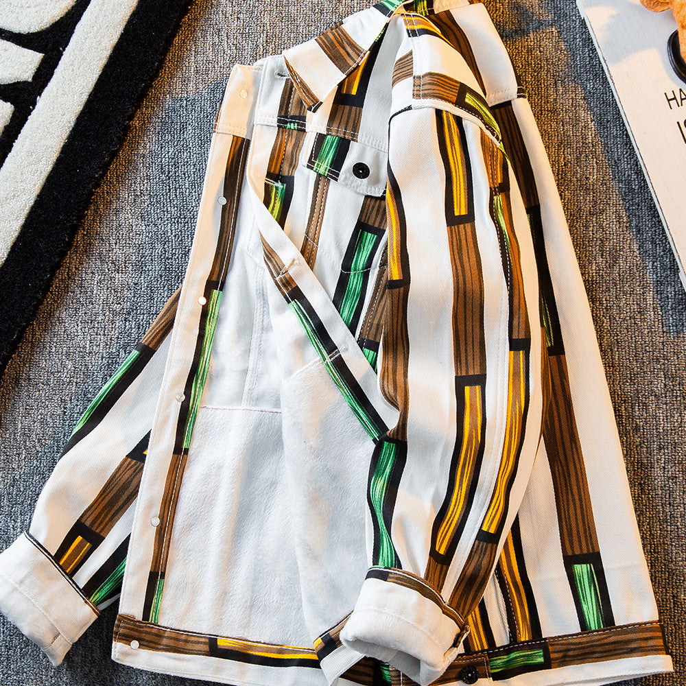 Thickened Plush Denim Jacket For Men